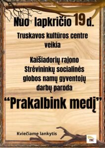 Kaišiadorių r. Strėvininkų globos namų gyventojų darbų paroda „Prakalbink medį” Hourly Schedule New Day Data Lap 19 2025 - Gru 30 2025 Vyksta Laikas 12:00 - 18:00 Share this event